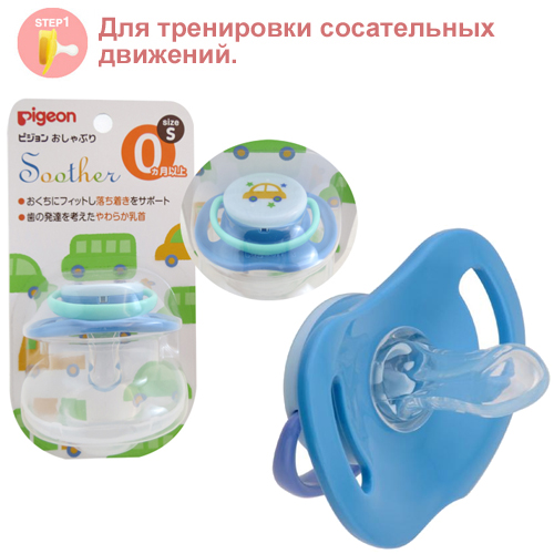 PIGEON Пустышка силиконовая «Машинка» от 0 мес. Step 1 (132961)
